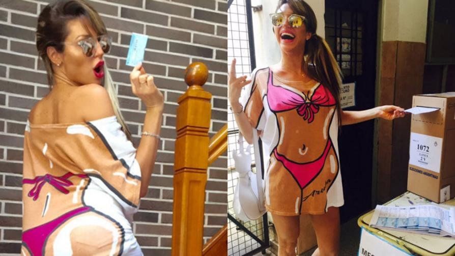 La mediática conmocionó al público masculino en el establecimiento donde fue a votar con un look playero.