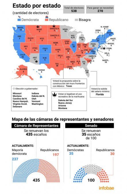 La elección que determinará si el republicano Trump suma otros cuatro años en la Casa Blanca o Biden recupera el gobierno para el Partido Demócrata despertó un entusiasmo ciudadano con escasos precedentes: 99.521.972 estadounidenses apelaron al voto por correo o al sufragio presencial adelantado, una cifra inédita en un país en el que sufragar no es obligatorio. Los medios locales estiman que este martes se sumarán 50 o 60 millones de votos más. Hace cuatro años, cuando Trump derrotó a Hillary Clinton en el Colegio Electoral, el total de votantes fue de 139 millones.