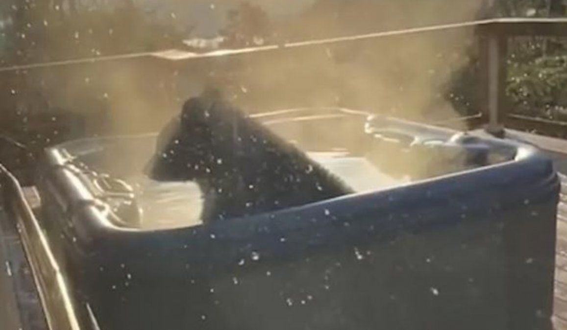 En el espectacular video, se ve al animal mientras camina a través de una cerca del patio, salta y se dirige a la bañera de hidromasaje.