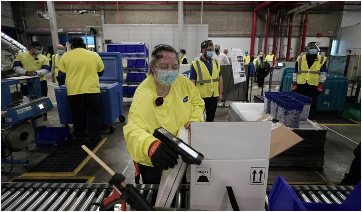 Envasadas en cajas con hielo seco a bajísimas temperaturas bajo cero, más vacunas de las farmacéuticas estadounidense Pfizer y alemana BioNTech arribarán hoy a 400 hospitales más y otros centros de distribución, informó CNN.