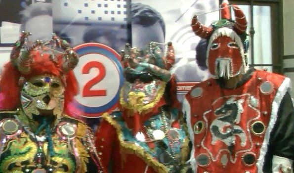 "Esto consiste en hacer el simulacro tradicional que se hace acá en Jujuy. Los disfrazados de Uquía vienen especialmente para esto, hacen un viaje de tres horas disfrazados", dijo Javier Sala organizador e integrante de la comparsa "Los alegres de Uquía".