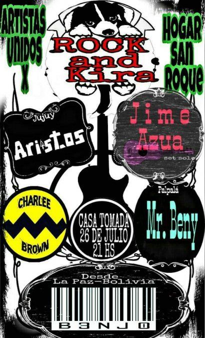 Las organizadoras del evento, Gabriela Benavidez y Jimena Azua, invitan a “rockear la noche” con la actuación de seis bandas: Aristos, Charlee Brown y Jimena Azua, Humano, Artistas Jujeños, Mr Beny desde Palpalá, y Benjo desde La Paz - Bolivia.