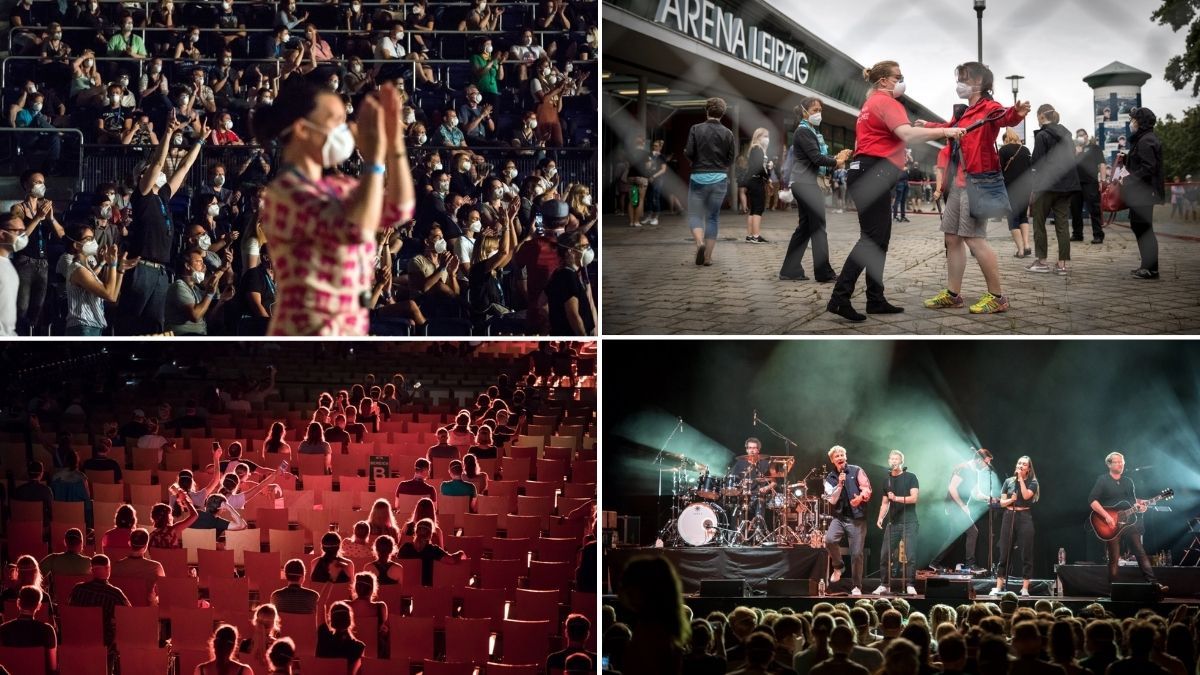 No eran los típicos asistentes a conciertos, sino voluntarios en un estudio elaborado por un equipo de la Universidad Martín Lutero de Halle-Wittenberg llamado Restart 19. Cada asistente, equipado con un rastreador de localización digital y un desinfectante de manos con un tinte fluorescente, fue asignado con cuidado en los asientos como parte de un experimento para rastrear los riesgos de infección por coronavirus que representan los grandes eventos en interiores.