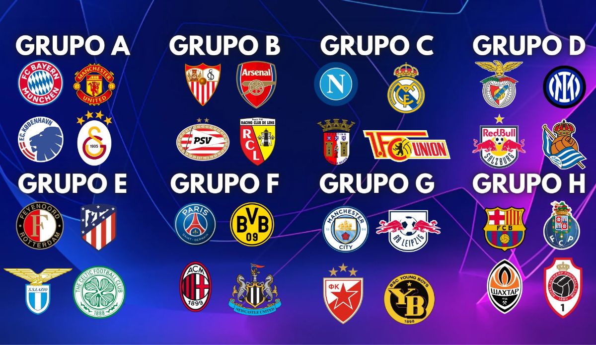 Grupo F: PSG (Francia), Borussia Dortmund (Alemania), Milan (Italia), Newcastle (Inglaterra)