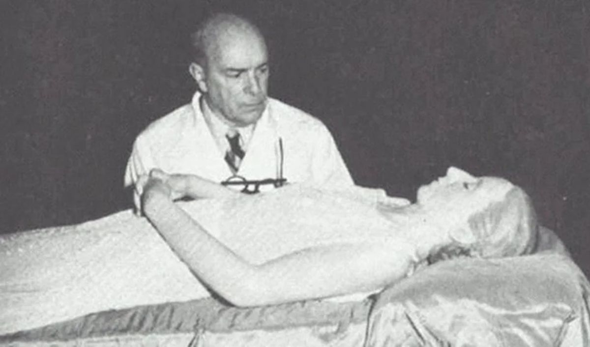 Con este fin y para certificar fehacientemente que fuese el cadáver de Evita, Perón mandó a llamar al doctor Pedro Ara para verificarlo. “Fue el sábado 4 de septiembre de 1971, hacia las 9 de la mañana (…) cuando sonó el teléfono. El señor López Rega, de parte del general Perón, me rogaba que fuera a visitarles. Fui recibido con su proverbial cordialidad por el general Perón, su esposa, Isabel Martínez, y su hombre de confianza, señor López Rega. Mostrándose los tres conmovidos; el General, en grado sumo. Penetramos juntos en un largo salón. Especie de jardín de invierno, inundado de sol. Al fondo, sobre una mesa, veíase un viejo y ordinario féretro ya abierto”, relató el doctor español en sus memorias.