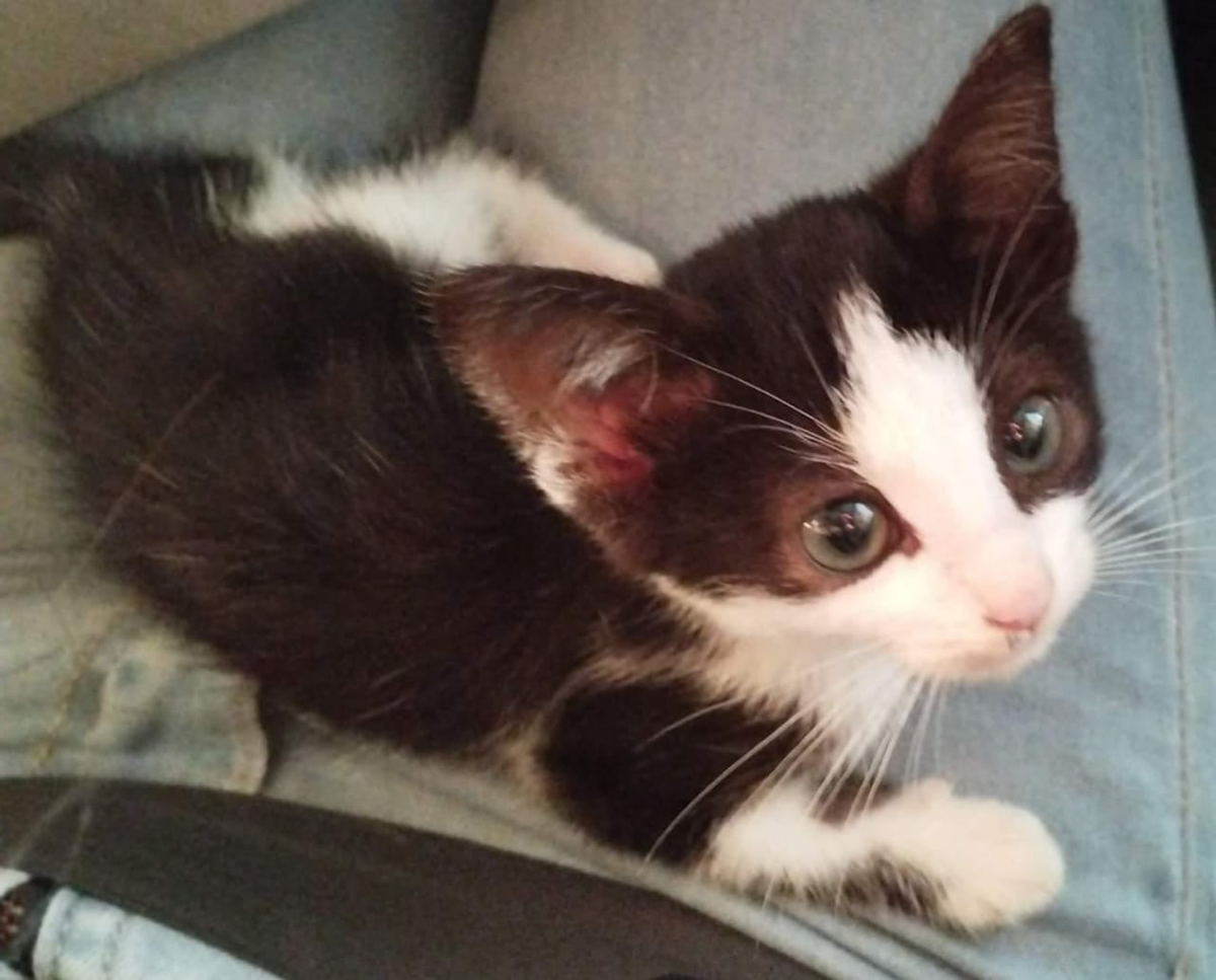 La tierna felina es de pelaje color blanco y con manchas negra. Una vecina la encontró deambulando en la calle y acudió a su rescate en barrio Gorriti.
