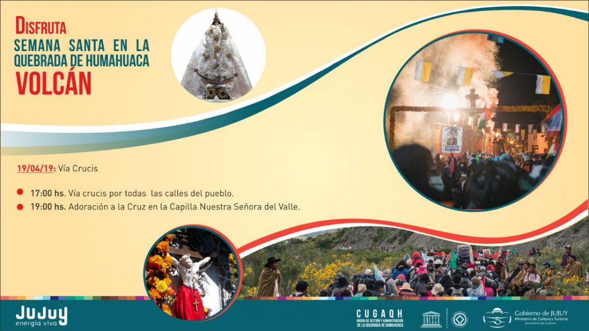 El pueblo de Volcán reeditará el Via Crucis este viernes a las 17.00 por todas las calles del pueblo. A las 19.00 se realizará la Adoración a la Cruz en la Capilla Nuestra señora del Valle.