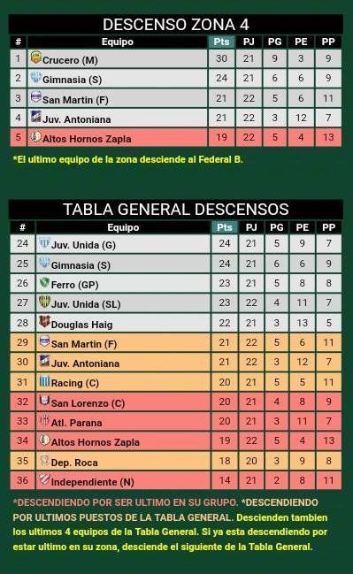 Con este resultado Zapla quedó último en el grupo cuatro de la reválida porque en Misiones, Juventud Antoniana le ganó a Crucero del Norte, también por 2 a 1.
