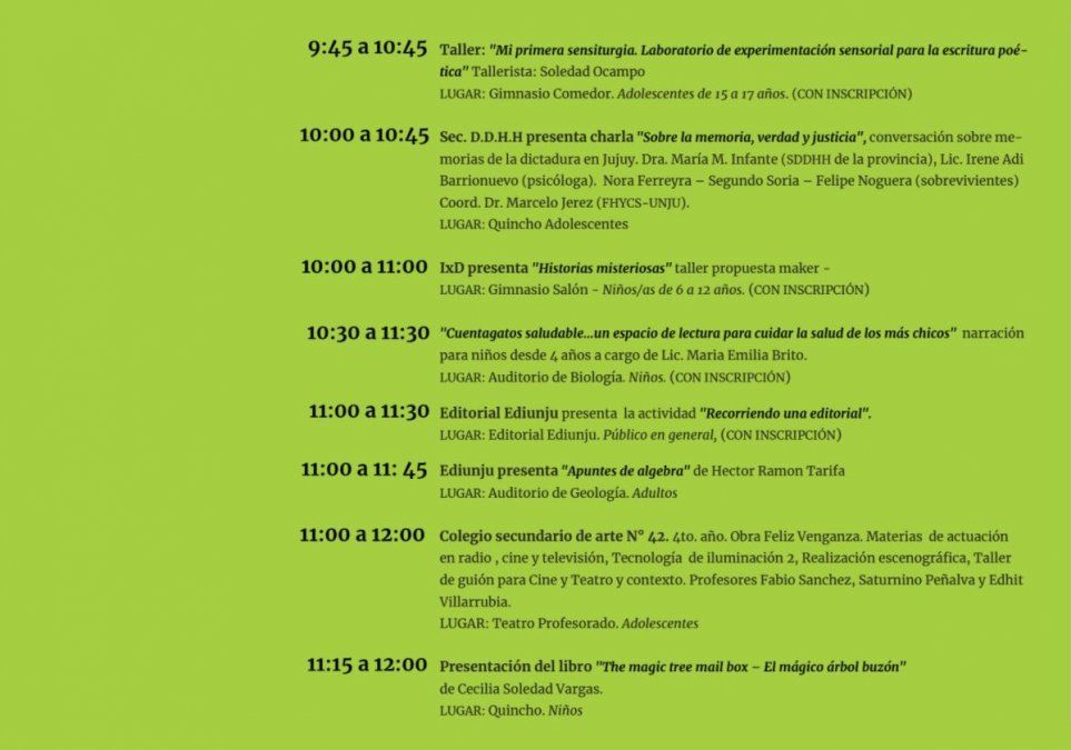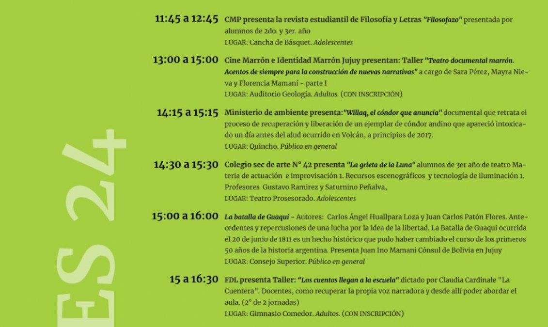 La Feria del Libro 2021 "entre antiguas apachetas y nuevas normalidades", se lleva a cabo hasta el 28 de agosto en el predio del Rectorado de la UnJu, en calle Bolivia y Airampo. El 29 de agosto habrá una extensión en Tilcara. La modalidad de las actividades es virtual y presencial.