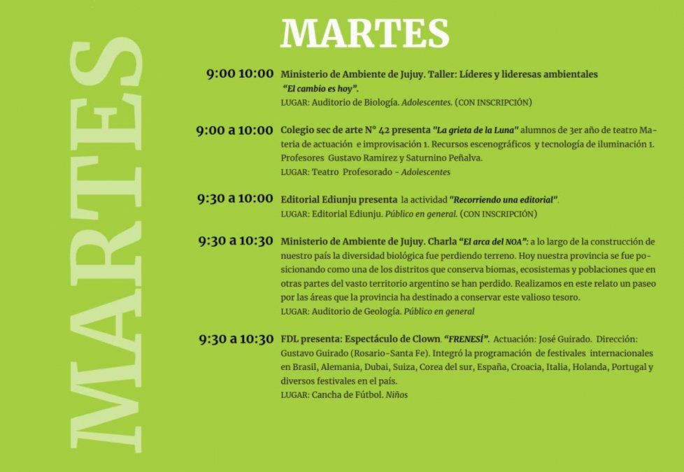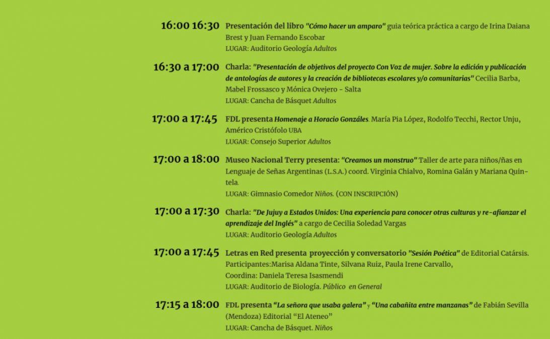 Charlas, talleres, música y más, este martes en la Feria del Libro