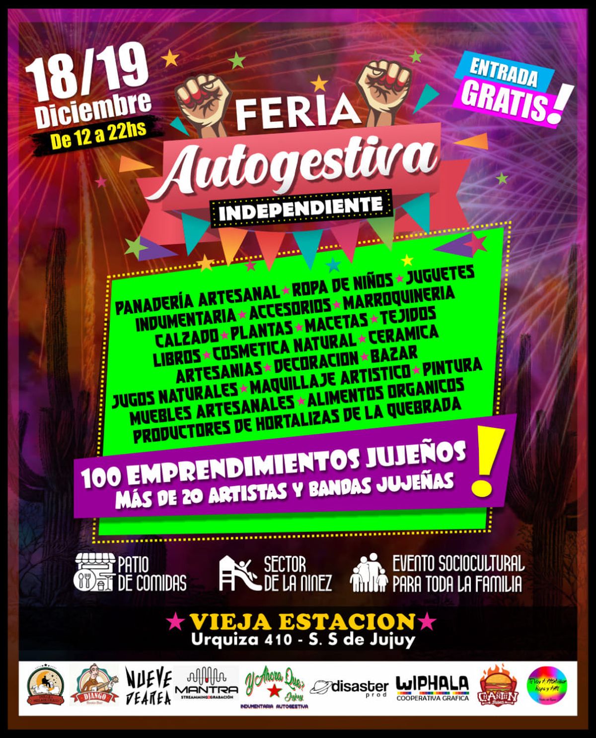 Este fin de semana tendrá lugar una nueva edición de la Feria Autogestiva e Independiente con más de 100 emprendimientos jujeños 20 artistas y bandas en escena.
