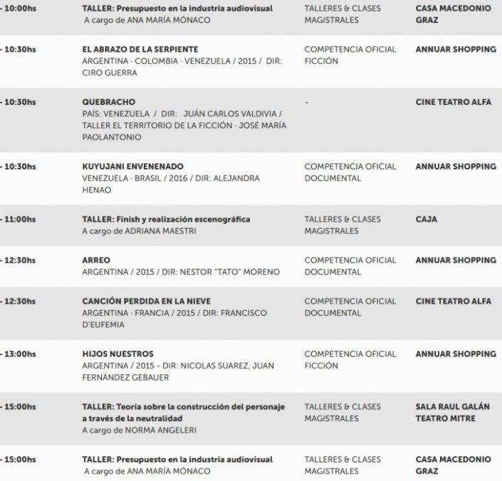 En el marco del Festival Cine de las Alturas se realizarán talleres, disertaciones, conferencias, meeting points y proyecciones de películas de ficción y documental de Argentina, Bolivia, Chile, Colombia, Ecuador, Perú y Venezuela. Todas las actividades son con entrada libre y gratuita.