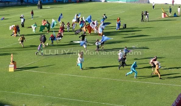 Cerca de las 14 horas, las hinchadas comenzaron a hacerse sentir en el estadio al ritmo de "Juntos en Jujuy". Como ya es tradicional, el duelo mayor se dio entre la Escuela de Educación Técnica Nº 1 “Escolástico Zegada” (Los Lobos), ubicada en la tribuna “Lobo Norte” y la Escuela de Educación Técnica Nº 2 “Prof. Raúl Salazar” (Los Santos), ubicada en la “Lobo Sur”.