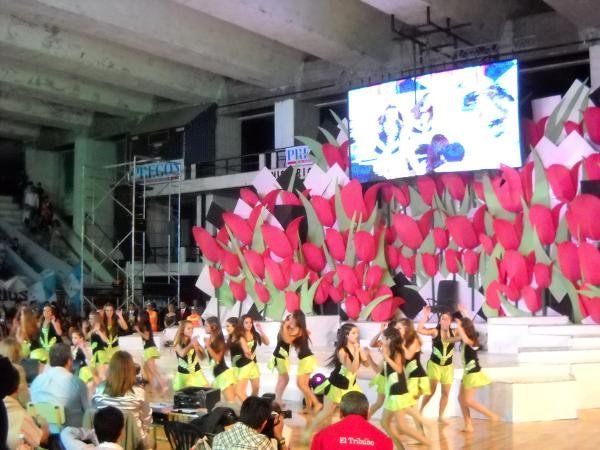 Ante el paso de cada candidata bajaban los aplausos desde las tribunas, donde las hinchadas de los colegios alentaban a sus candidatas. Miles de papelitos, serpentinas y globos multicolores, caían desde lo alto acompañados por las bocinas que no descansaron en toda la noche.