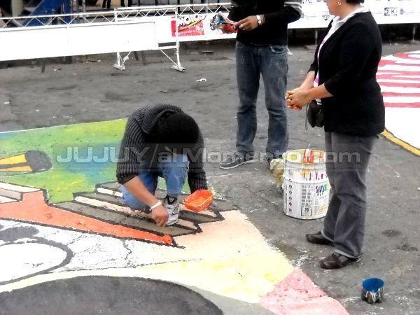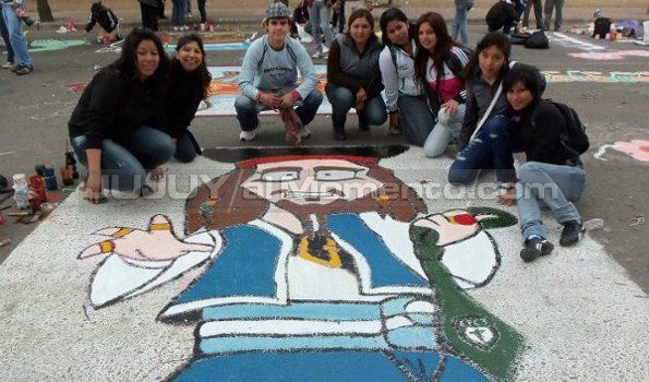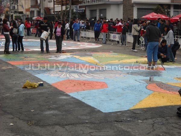 Hasta horas de la tarde, los jóvenes estudiantes jujeños se dan cita como todos los años, para dejar plasmados sus dibujos sobre la Avenida Córdoba.