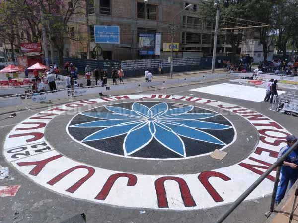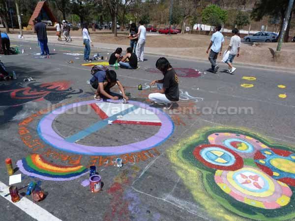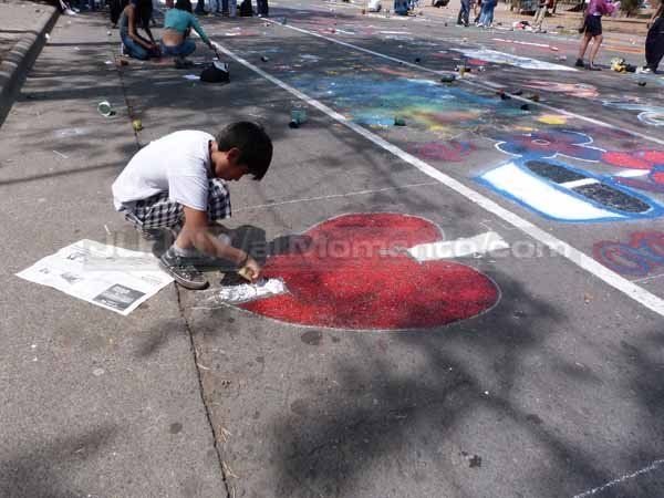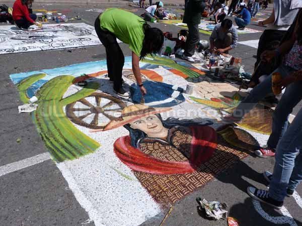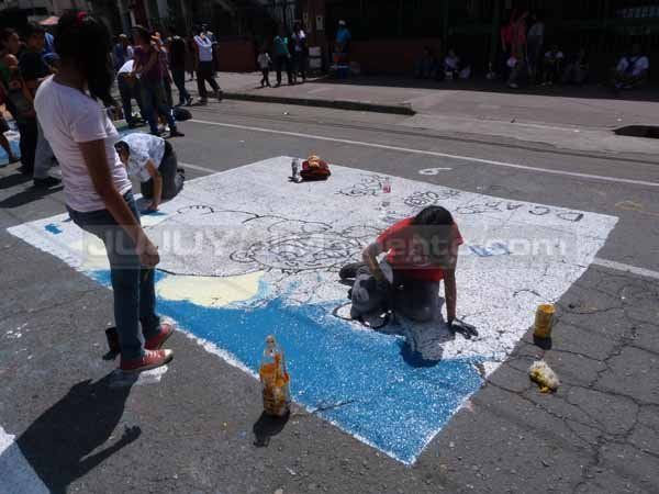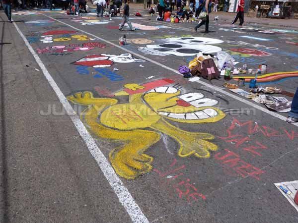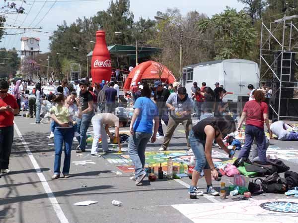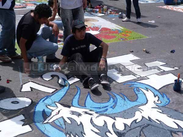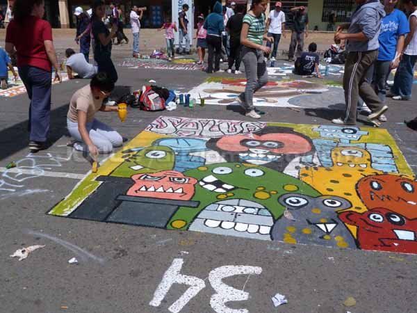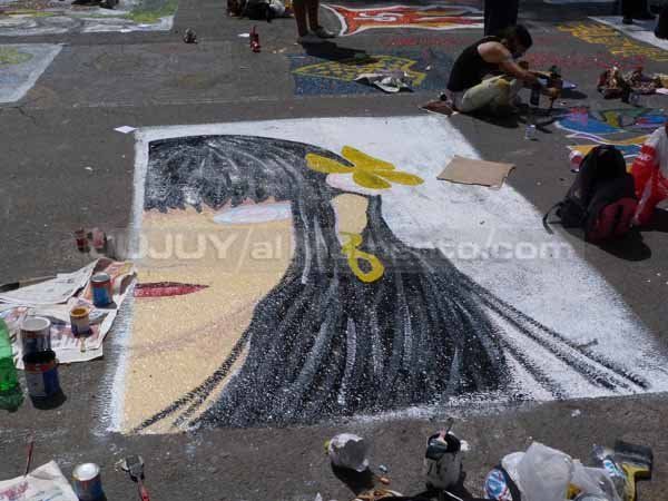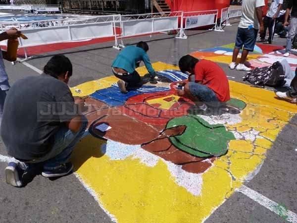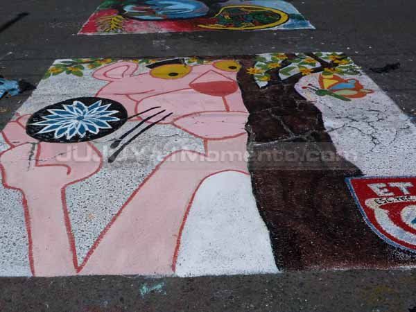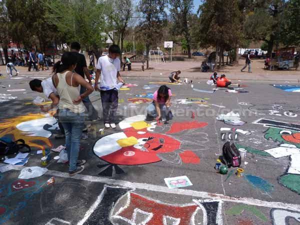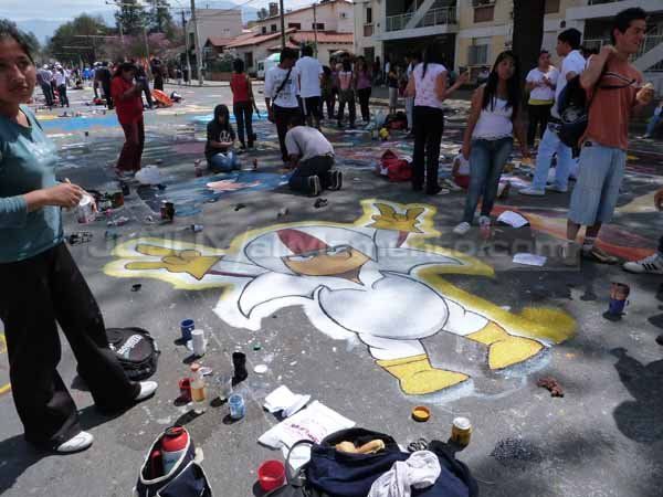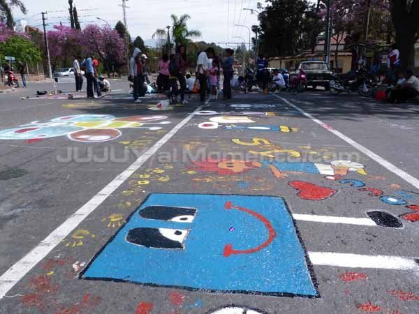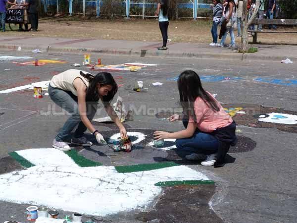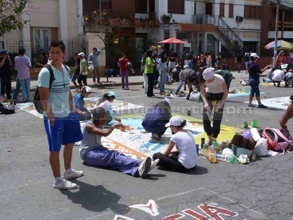 Flores, personajes de historietas, símbolos, imágenes autóctonas, brotaron de lo pinceles de los jóvenes artistas que plasmaron sobre el pavimento, los diseños consensuados previamente en los respectivos colegios.