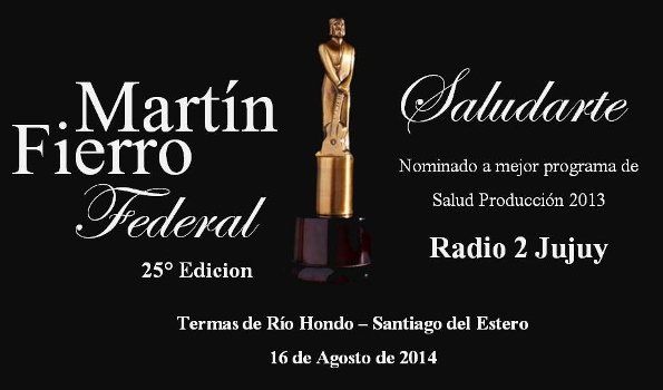 El programa Saludarte fue ternado para competir con en Radio en el rubro “Temas Médicos”, con Calidad de Vida, de Radio Universidad Nacional de Mar del Plata - Mar del Plata y Vanina y tu salud, que se emite por FM 93.9 Ranquel Stereo, de la ciudad de Río cuarto, Córdoba.