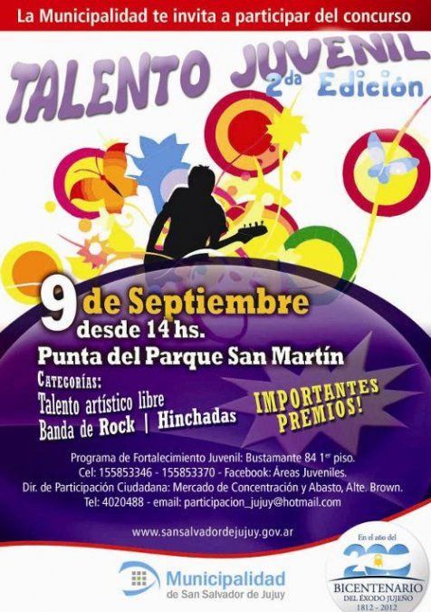 La Municipalidad de San Salvador de Jujuy, a través de la Secretaría de Planificación y Desarrollo, a cargo de Gustavo Muro, anunció el lanzamiento del 2º concurso de “Talento Juvenil” en el marco de la Fiesta Nacional de los Estudiantes, el cual tendrá lugar el domingo 9 de septiembre en la punta del Parque San Martín.