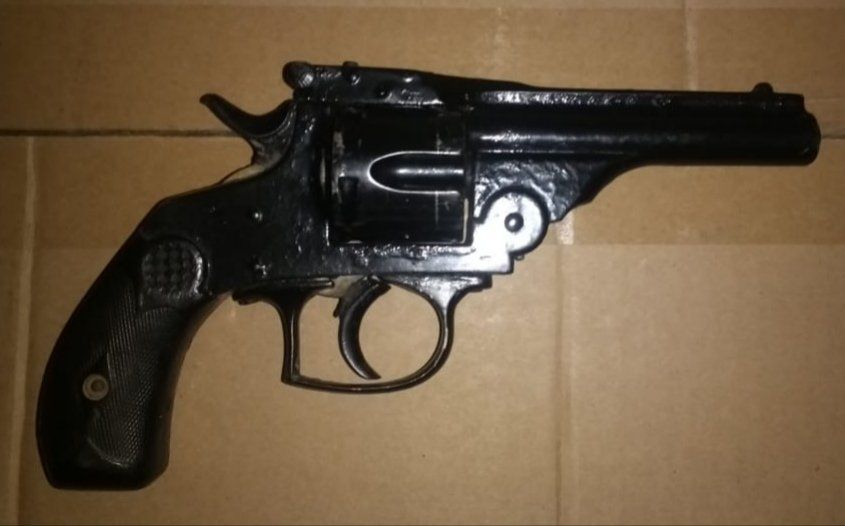 Al someterse a la requisa correspondiente, sustrajeron entre sus prendas un arma de fuego tipo revolver de color negro con tambor para cartuchos calibre 38 mm, procediendo al secuestro del mismo con la presencia de testigos hábiles.