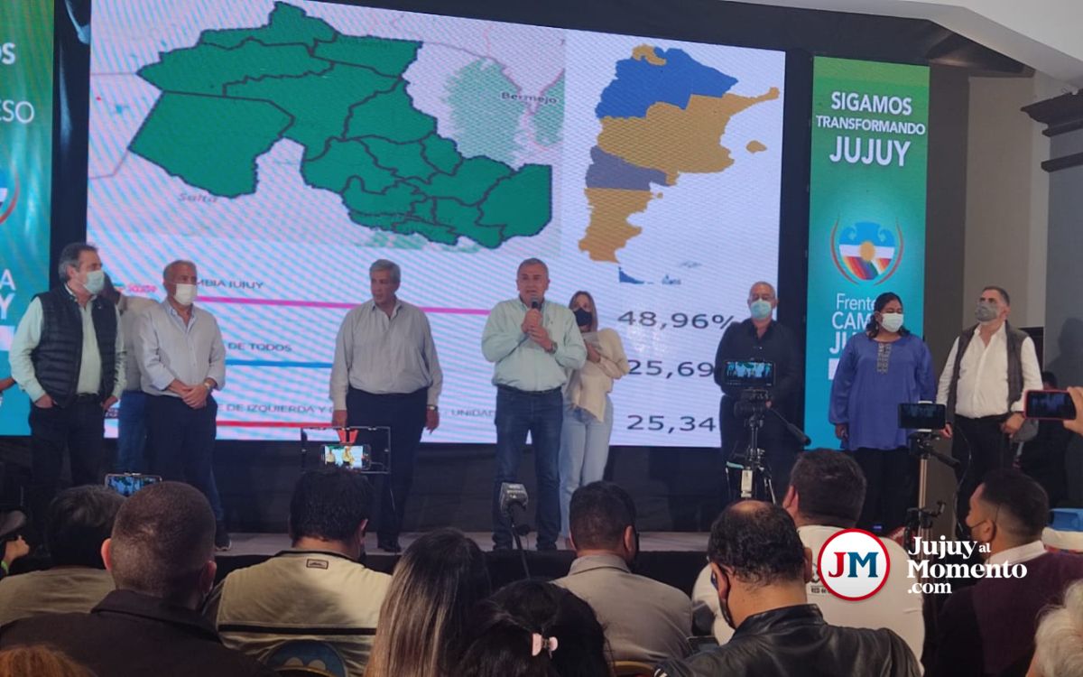 Desde el bunker de Cambia Jujuy, el mandatario provincial habló de un triunfo contundente del oficialismo, de la derrota electoral del Frente de todos a nivel nacional y provincial y elogió la elección de la Izquierda. Pese al optimismo inicial, Morales evitó hablar del ingreso de dos candidatos al Congreso como habían anunciado.