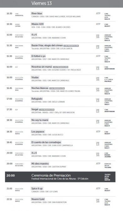 El Festival Internacional Cine de las Alturas continúa con la proyección de muestras y films en la categoría documental y ficción. Las entradas se retiran con anticipación en cada boletería, sin ningún costo.
