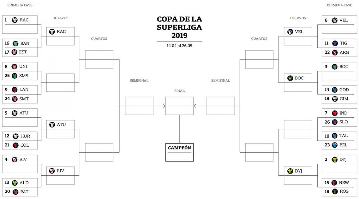 Los seis primeros de la tabla final de posiciones de la Superliga accederán directamente a los octavos de final. En tanto, los 20 equipos restantes se cruzarán en la primera etapa en choques de ida (del 12 al 29 de abril) y la vuelta, del 19 al 22 de abril), en donde el mejor ubicado definirá de local. El séptimo se cruzará con el 26º, el octavo con el 25º, el noveno con el 24º y así respectivamente.