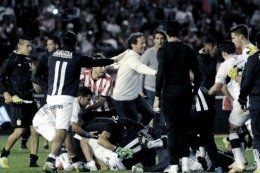 Tras la expulsión de Ascacíbar, se produjo una descomunal gresca entre varios jugadores que obligó al árbitro Silvio Trucco a suspender el partido, cuando iban dos minutos de descuento de la parte final.