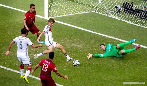 La `frutilla del postre’ llegó a los 33m., cuando el ingresado Andre Schurrle (Chelsea) metió un remate fuerte, al que Rui Patricio le dio un rebote largo y así Muller, la estrella del partido, convirtió su octavo gol en Copas del Mundo en 7 partidos (marcó 5 en el anterior Mundial Sudáfrica 2010).