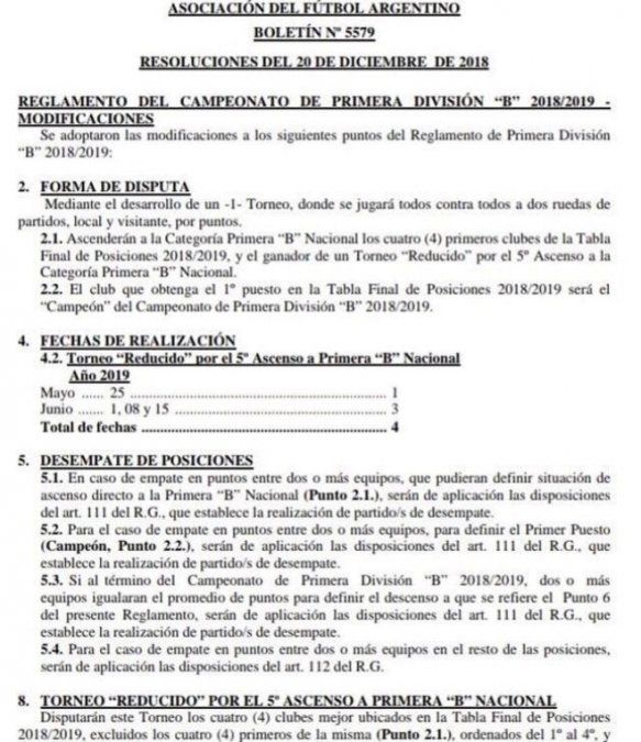 Se confirmó el cambio en el reglamento de la B Metro. A partir de ahora, para el actual campeonato habrá en total cinco ascensos a la B Nacional: los cuatro primeros de la tabla, y se suma el ganador de un mini Reducido a disputarse entre el 5° y el 8°.