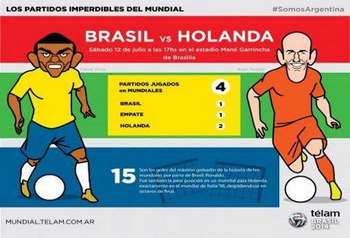 En tanto, Holanda, que llega cansado por jugar 120 minutos ante Argentina, mantendría el mismo equipo. Es decir, con el mediocampista Nigel De Jong y el defensor Ron Vlaar como titulares, ya recuperados de sus molestias.