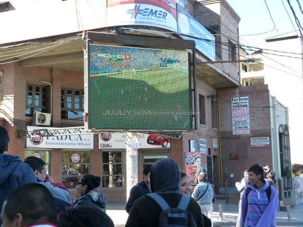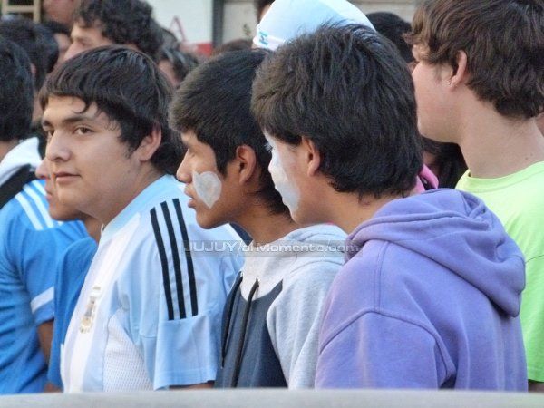 En ese momento las gargantas de millones de argentinos dieron rienda suelta a sus gritos contenidos, pero el sufrimiento no pasaba para los doscientos jujeños que se reunieron en Lavalle y 19 de abril, para ver las alternativas del partido en la pantalla gigante colocada sobre un comercio de la esquina.