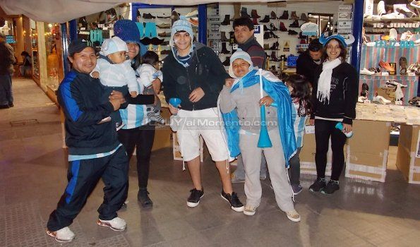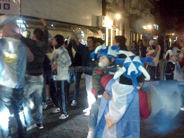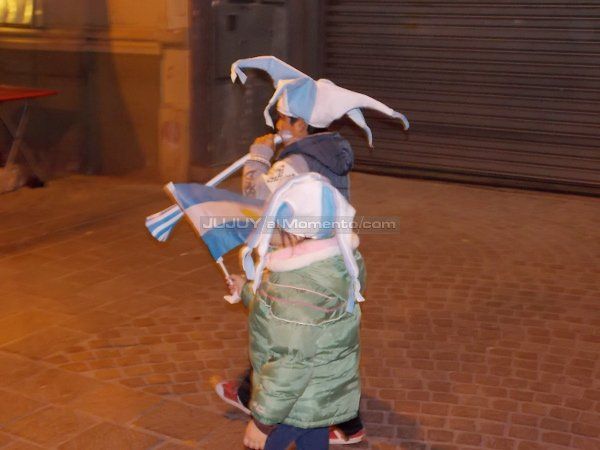 Poco menos de un centenar de personas salió las calles del centro con banderas, camisetas y gorros de Argentina. El reducido grupo de hinchas se congregó en la peatonal para dirigirse luego hacia plaza Belgrano, acompñados de los pocos automovilistas que se sumaban al festejo con sus bocinas.
