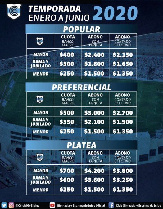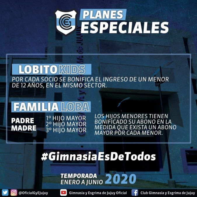Gimnasia y Esgrima de Jujuy presentó una nueva campaña de socios para que el hincha vuelva con la familia al Estadio “23 de Agosto”. La campaña se denomina #GimnasiaEsDeTodos e invita a los hinchas a vivir, alentar y presenciar cada partido.