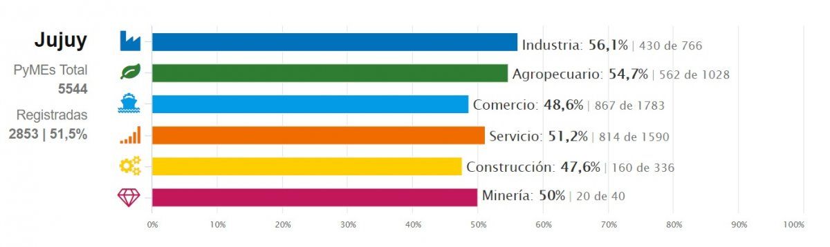 Según datos del ministerio de desarrollo productivo de la nación, en Jujuy funcionan 5.544 micro, pequeñas y medianas empresas, de las cuales 2.853 están registradas.