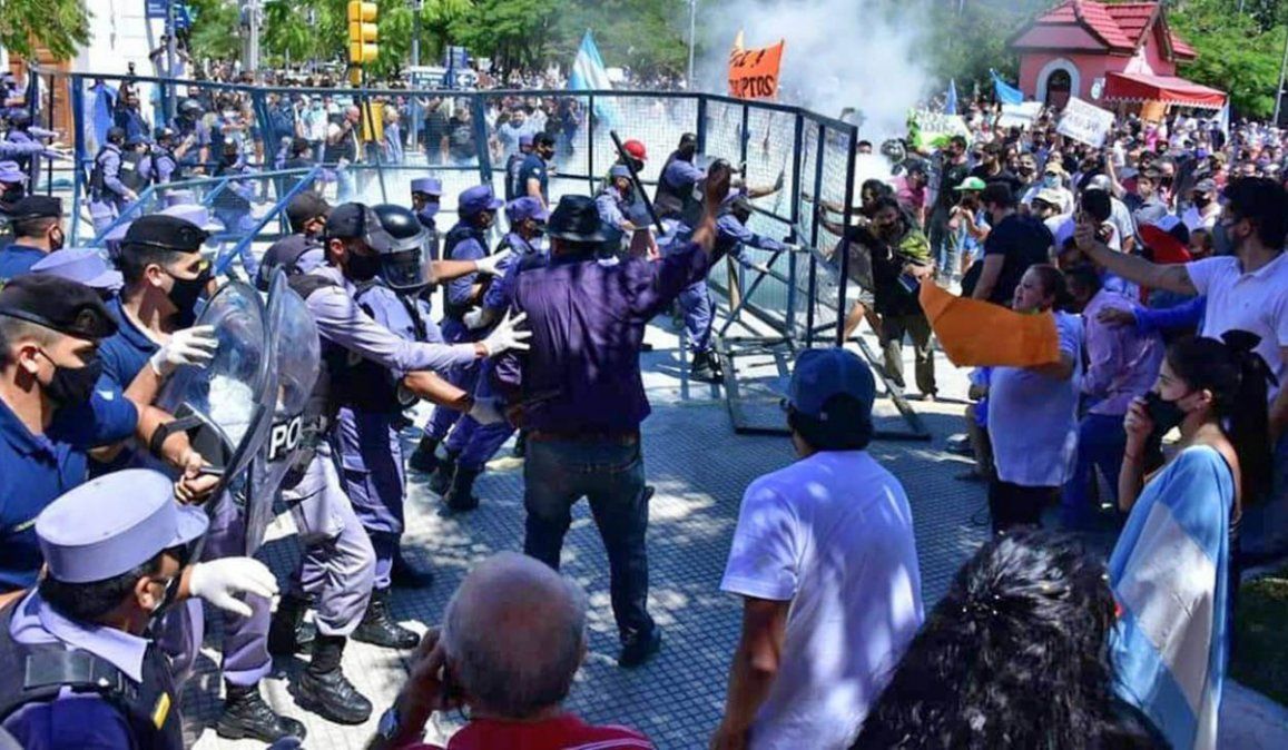 La permanente campaña de desprestigio llevada adelante por los medios hegemónicos de comunicación sobre el gobierno provincial, el constante boicot a las medidas sanitarias excepcionales para hacer frente a la pandemia, el uso político que algunos sectores de la oposición hacen de estos hechos, y la violencia desmedida de algunos manifestantes —que hoy incluso intentaron ingresar a la Casa de Gobierno provincial—,no justifican el uso desproporcionado de la fuerza policial en la represión de la protesta.