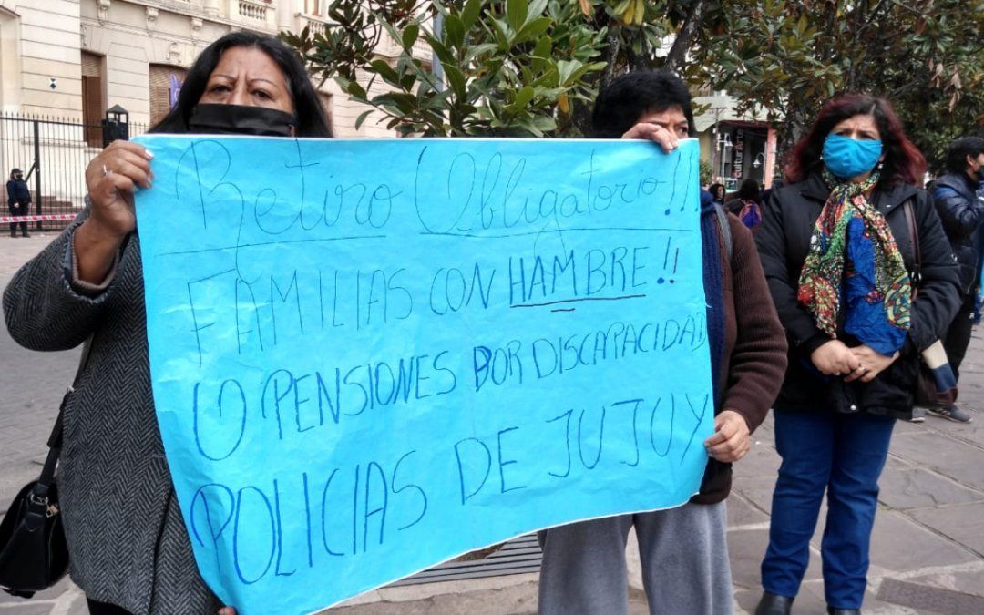Este miércoles gran cantidad de ex efectivos de la Policía y familiares se instalaron en inmediaciones a Plaza Belgrano frente a Casa de Gobierno para exigir celeridad en los trámites jubilatorios.