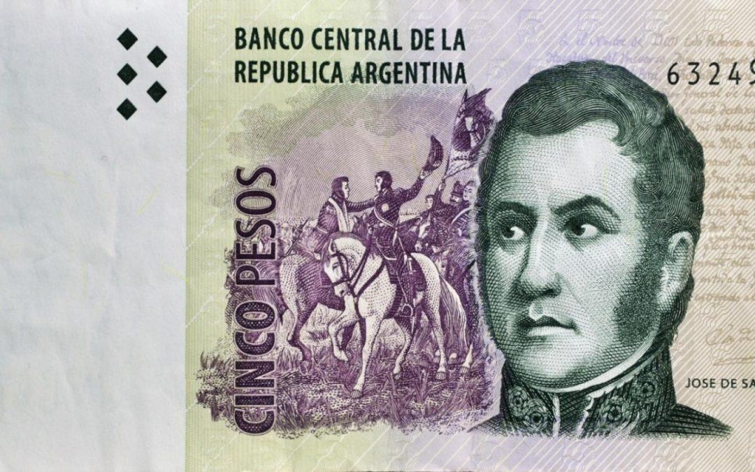 El billete de 5 pesos, de color verde y que lleva la imagen del General José de San Martín, había entrado en vigencia en 1998. Será reemplazado por las monedas de ese valor, con las que coexistirá hasta su desaparición definitiva. La moneda de 5 pesos, que comenzaron a circular hace casi dos años, es de color plateado y tiene la imagen del arrayán.