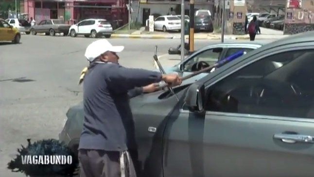 En los alrededores de calle Urquiza nos encontramos con Ariel, un limpiavidrios que comenzó su oficio hace 20 años. Todos lo saludan porque ya lo conocen, el saluda y espera que el semáforo se ponga en rojo para poder ofrecer su servicio.