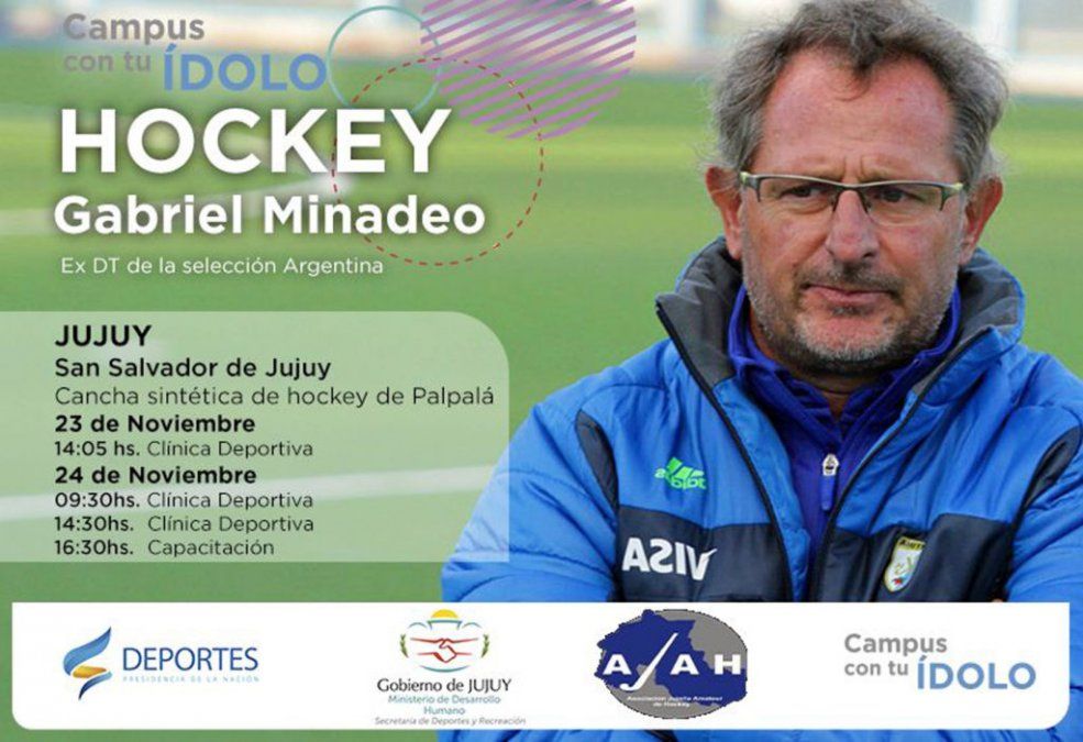 Durante los días 23 y 24 de noviembre, se realizará un campus de Hockey en el marco del programa nacional “Campus con Tu Ídolo”, con la presencia de Gabriel Minadeo, ex entrenador de Las Leonas y la ex jugadora Jorgelina Rimoldi en la cancha sintética de Palpalá
