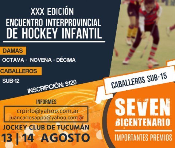 El 13 y 14 de agosto se realizará la XXX edición del tradicional “Encuentro Interprovincial de Hockey Infantil”, auspiciado por la Asociación Tucumana Amateur de Hockey sobre Césped y Pista, y organizador por el Jockey Club de Tucumán.