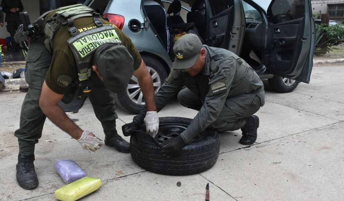 El procedimiento tuvo lugar en la localidad santiagueña de Colonia Dora, en donde los gendarmes detectaron 10 paquetes rectangulares acondicionados en el ducto de ventilación del aire acondicionado, la rueda de auxilio y el asiento trasero del vehículo.