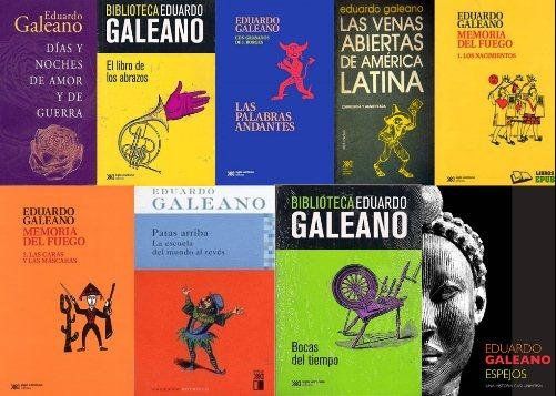 La obra de Eduardo Galeano abarca los más diversos géneros narrativos y periodísticos. Escritor prolífico. Algunos de los títulos suyos a destacar son Los días siguientes(1962), China, crónica de un desafío (1964), Los fantasmas de día de León (1967), Guatemala, país ocupado (1967). Su trilogía Memoria del fuego, que combina elementos de la poesía, la historia y el cuento, está conformada por Los nacimientos (1982), Las caras y las máscaras(1984) y El siglo del viento (1986), Nosotros decimos no (1989), El libro de los abrazos (1989), Las palabras andantes (1993), El fútbol a sol y sombra (1995), Las aventuras de los jóvenes dioses (1998), Patas arriba. La escuela del mundo al revés(1999), Bocas del tiempo (2004) y Espejos. Una historia casi universal (2008). Falleció a los 74 años en Montevideo, su ciudad natal.