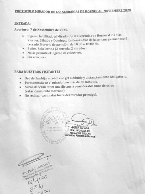 Cabe indicar que el protocolo presentado por la comunidad del Hornocal fue aprobado por el COE municipal de Humahuaca.