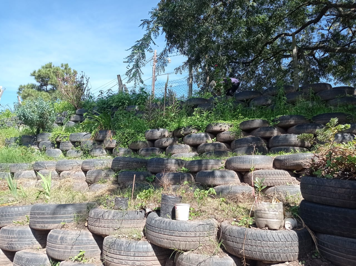 Este espacio nació en el año 2019 con la simple intención de darle otro aspecto al sector. Ahora, la encargada de este sembradío se encuentra realizando las tareas necesarias para recuperar la plantación. Son más de 1.200 neumáticos que en su interior tendrán hermosas flores y hortalizas.
