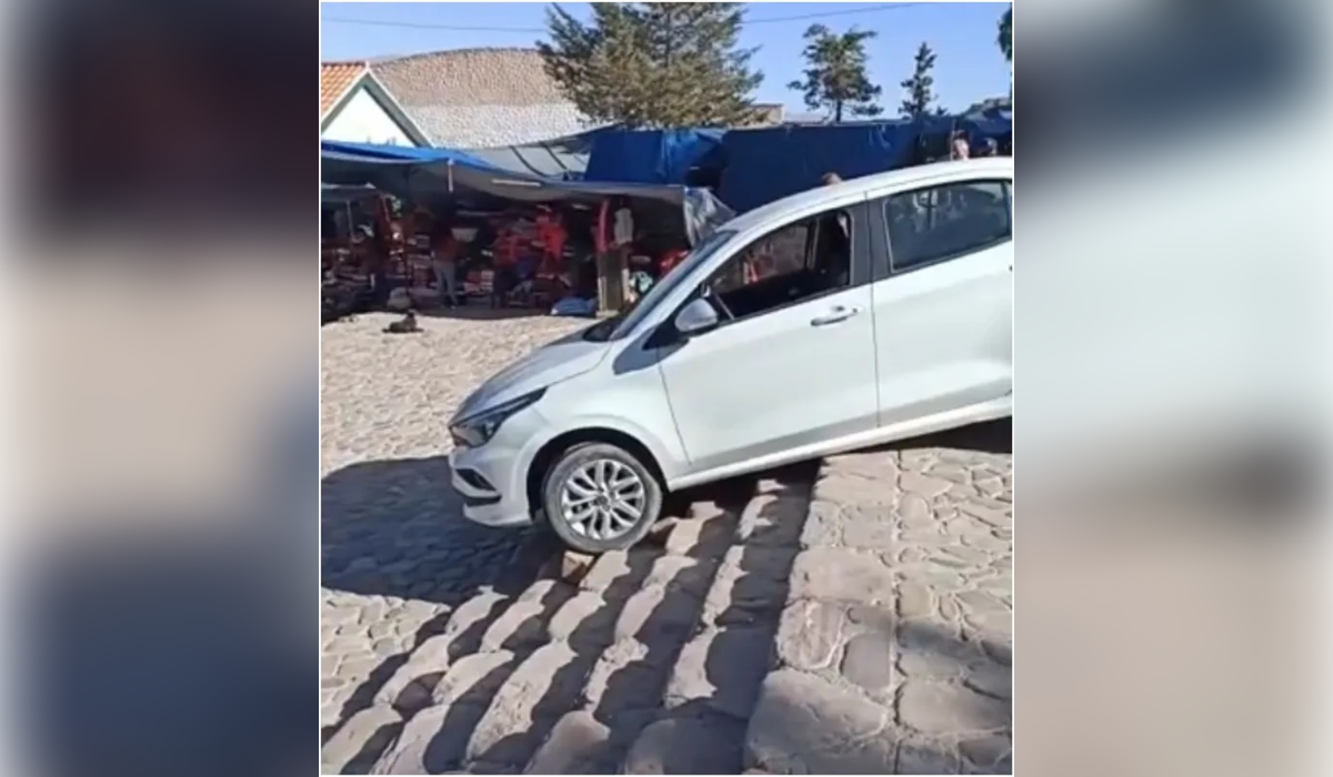 Un turista se desorientó por un error del GPS y su auto terminó atascado en las escaleras del Monumento a los Héroes de la Independencia en Humahuaca.
