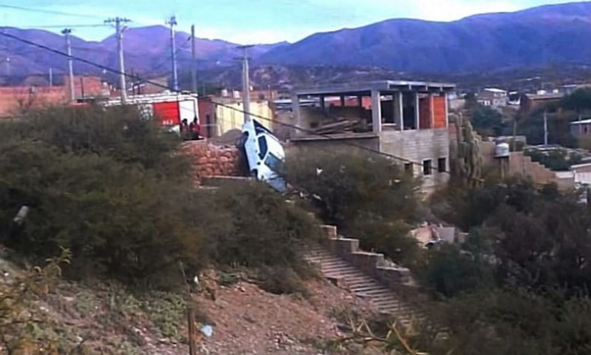 Una camioneta perdió el control y desbarrancó a metros del cementerio local, en paralelo a las escalinatas.