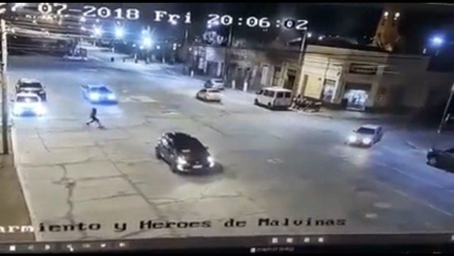Sucedió el último viernes a las 20:05, según se puede advertir en el video de la cámara de vigilancia instalada en la avenida Sarmiento, una de las principales de la localidad.