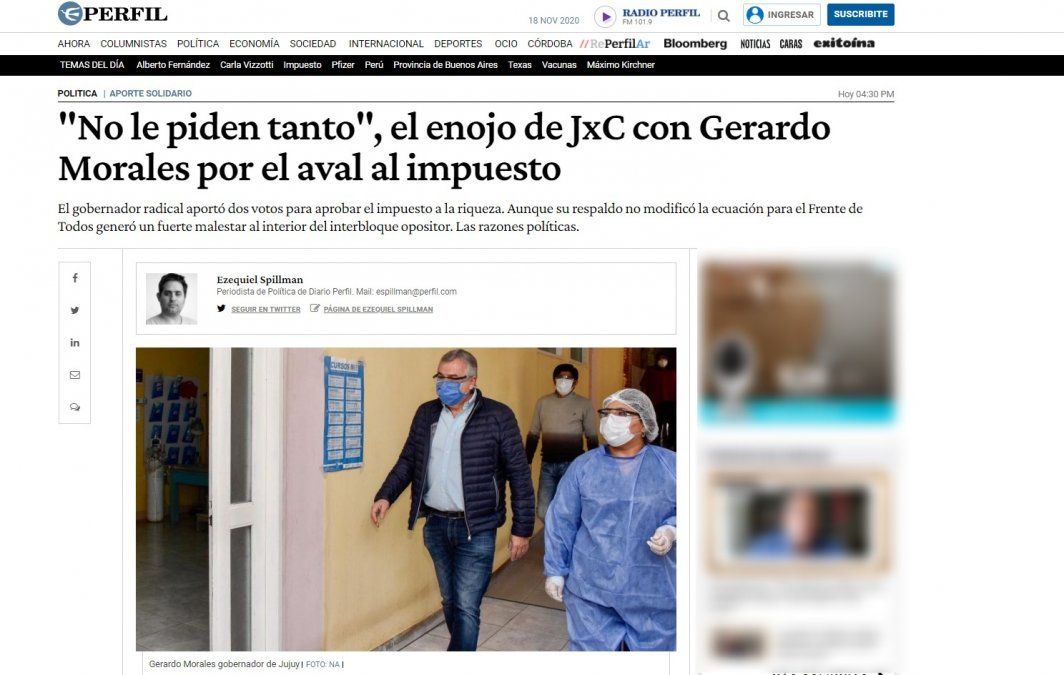 Según expuso diario Perfil, a los legisladores radicales María Gabriela Burgos y Jorge Rizzotti se los notó visiblemente incómodos en el recinto. Y es que pese a que responden a Juntos por el Cambio, tenían la orden del gobernador Gerardo Morales de votar a favor del Impuesto a la Riqueza, un proyecto impulsado desde el kirchnerismo.