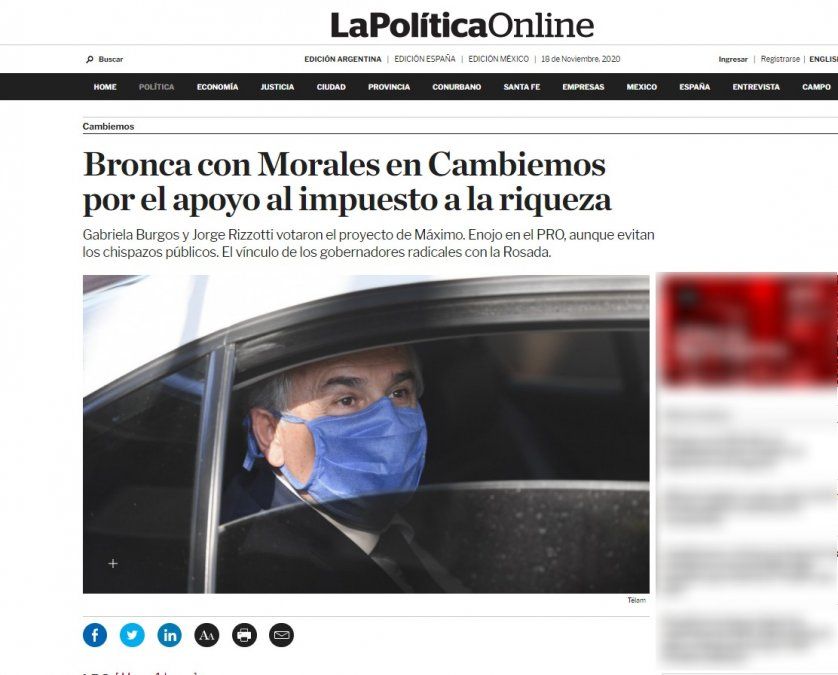 - Dos de sus legisladores -correligionarios del partido radical- votaron a favor del Impuesto a la Riqueza y ya lo habían hecho con el Presupuesto 2021.