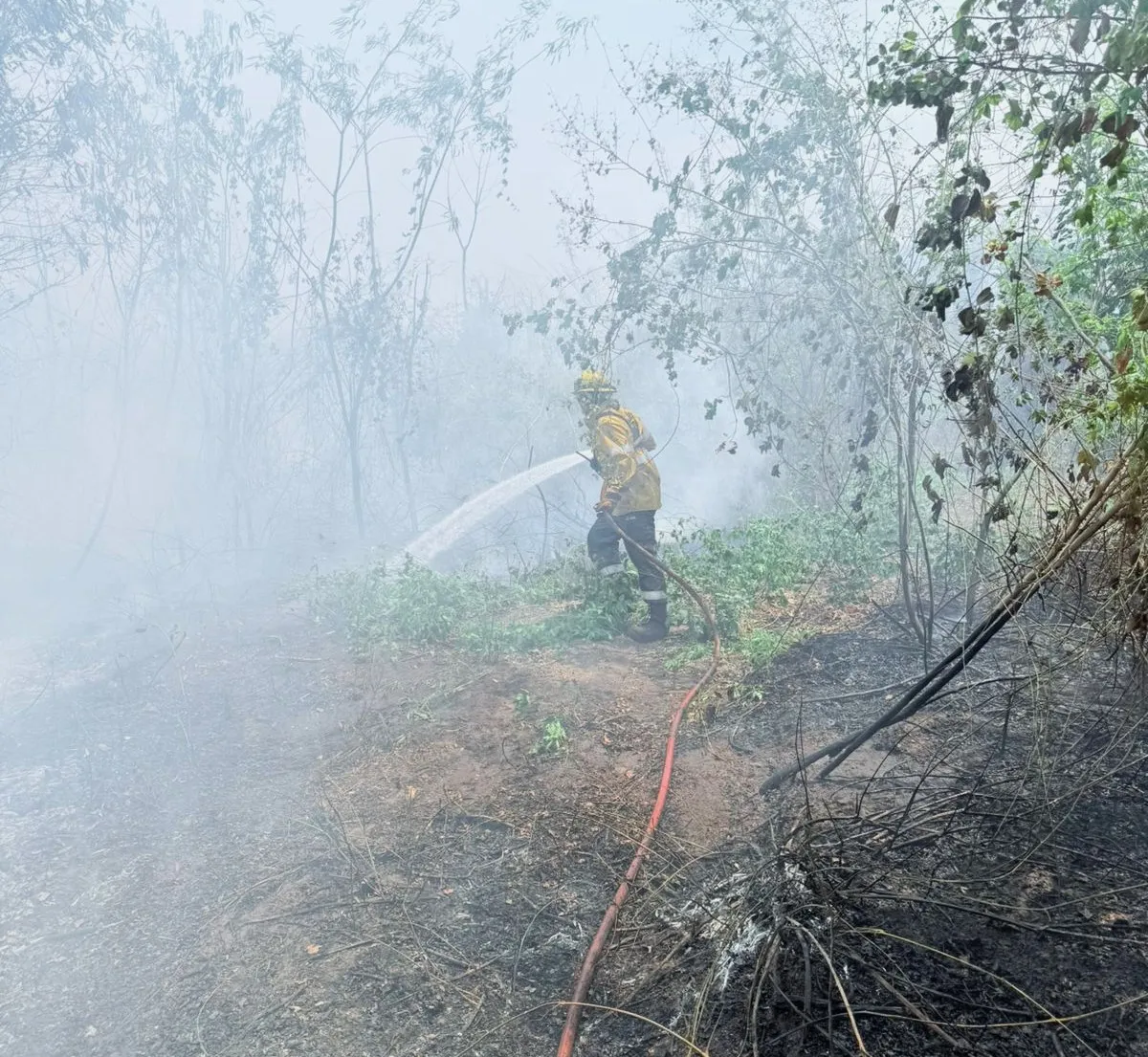 - Por otro lado, en el Departamento Ledesma, hay dos focos de incendios importantes: por un lado, en Ruta Nacional 34 en cercanías a Caimancito, lleva afectada aproximadamente unas 260 hectáreas de bosque nativo y pastizales. Allí trabajan brigadistas de la Base El Brete junto al equipo de ICE de Parque Nacional Calilegua.